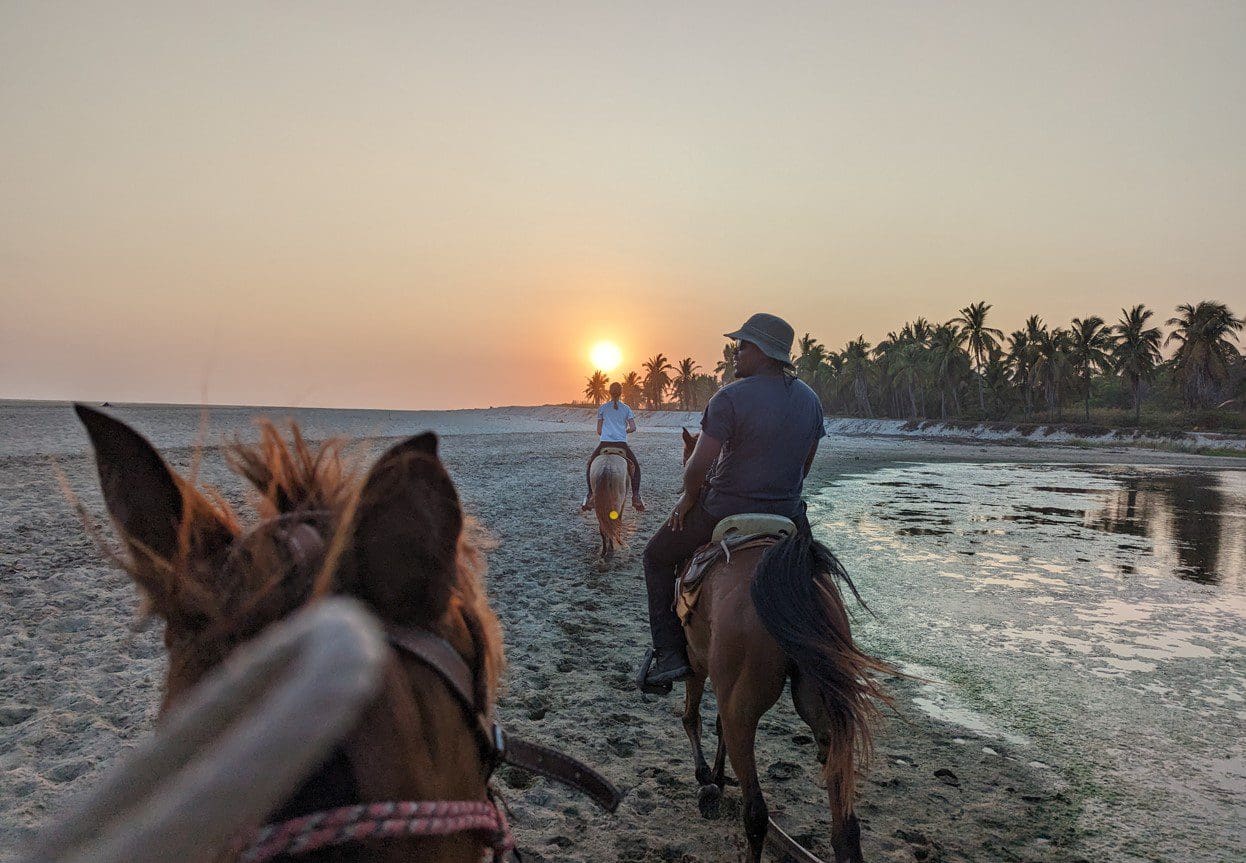 We enjoyed every second of it: the horseback riding, crossing the river in a boat, chilling on the beach, eating a coconut and seeing the sunset.