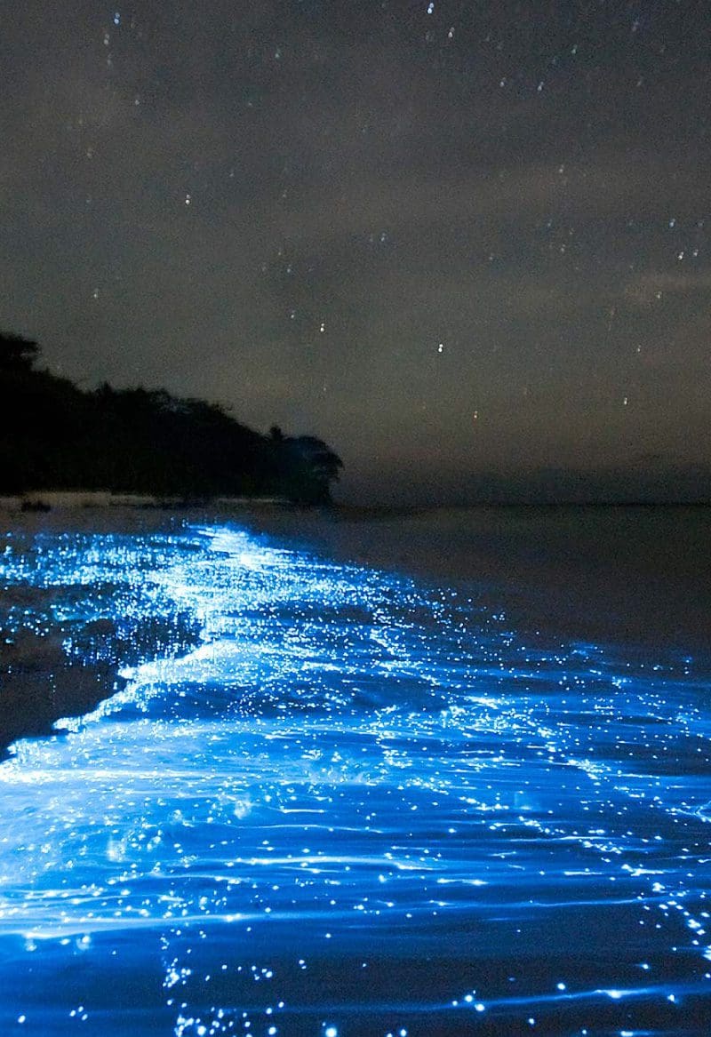 Hace un mes, si me hubieras dicho que estaría observando estrellas arriba mientras sumergía mi mano en un océano que brillaba abajo, lo habría descartado como una fantasía. Sin embargo, aquí estoy, viviendo este sueño, experimentando la magia de observar