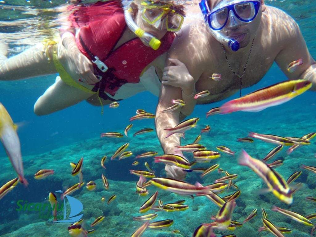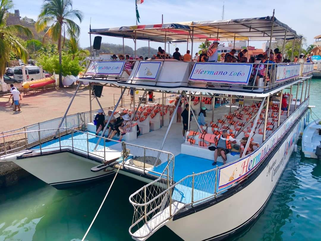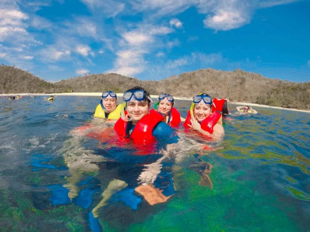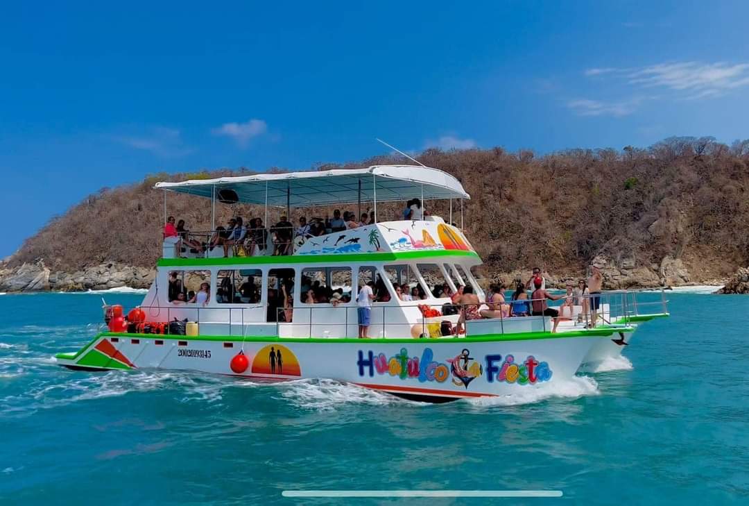 Comenzamos en la Bahía de Santa Cruz, donde tomaremos el catamarán. Durante el recorrido disfrutarás de aguas y refrescos gratuitos mientras visitamos 5 de las 9 bahías de Huatulco. También podrás realizar snorkel (con costo adicional). 🤿🐠 Duración: 5 horas en el catamarán.