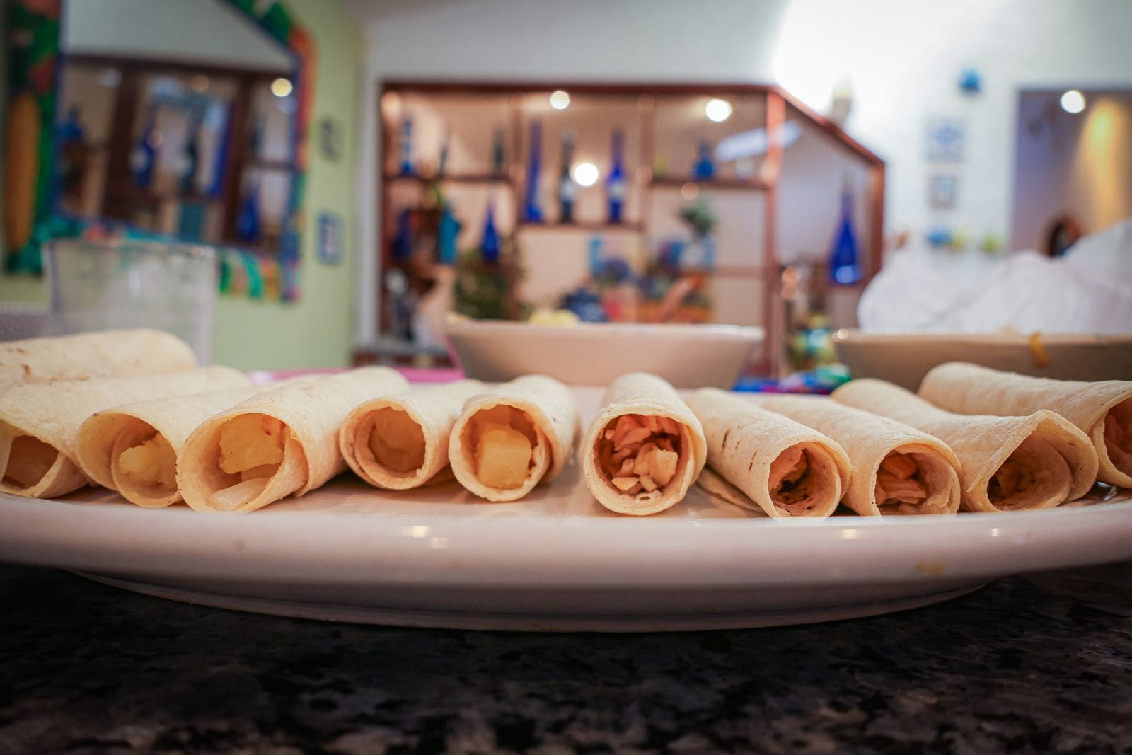 - Tacos Dorados – Tacos crujientes rellenos de papa y cubiertos de guacamole.