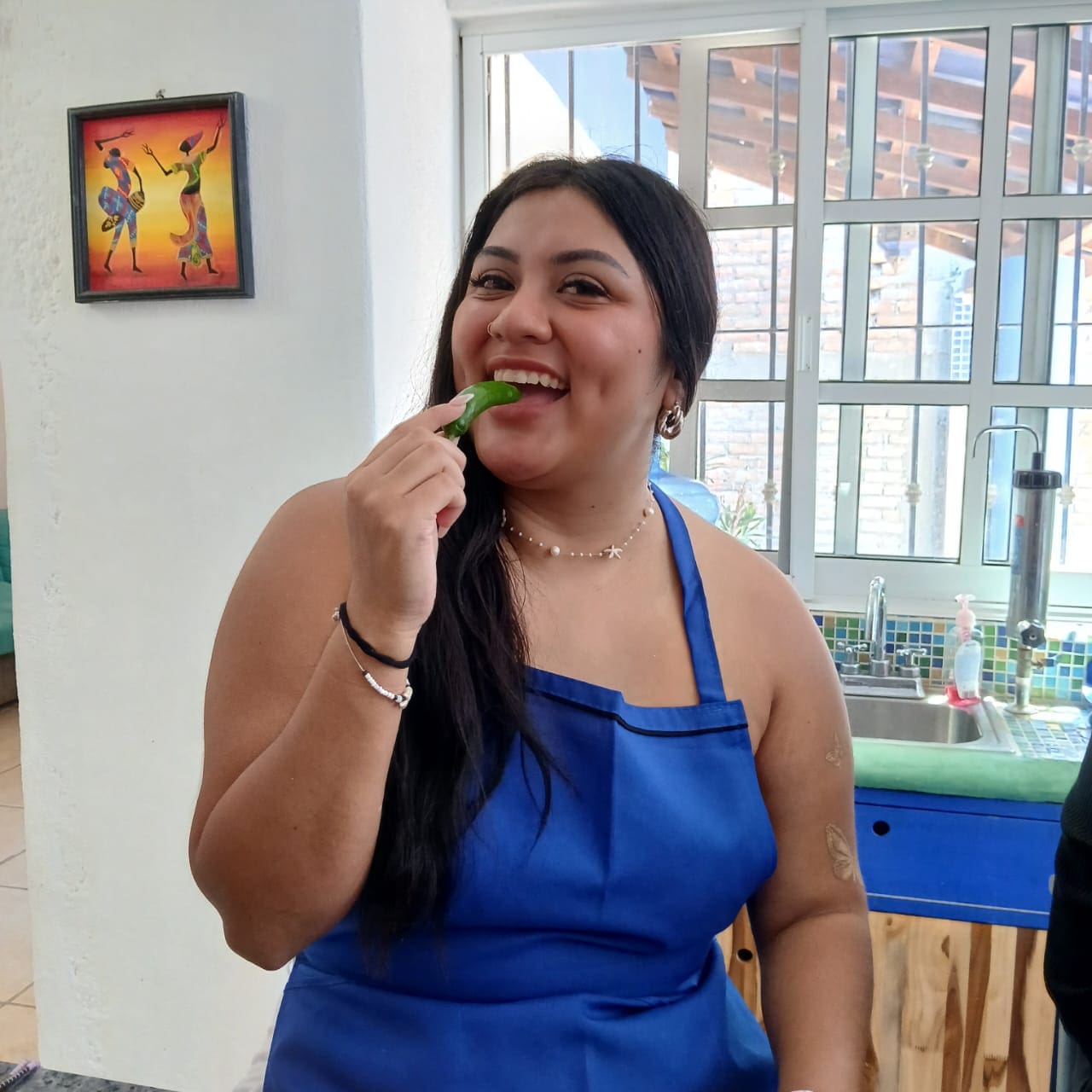 Hola, soy Jazmín. Nací y crecí en el vibrante estado de Oaxaca, y estoy profundamente conectada con las tradiciones, sabores e historias de mi cultura. Como una orgullosa oaxaqueña con un profundo amor por la comida y la rica herencia de mi tierra, he dedicado mi vida a compartir la belleza de la cultura mexicana con el mundo. A través de mis clases de cocina, te invito a experimentar no solo las recetas, sino también el alma de Oaxaca. Desde aprender a hacer tortillas a mano hasta entender el profundo significado cultural del mole, me esfuerzo por crear una experiencia culinaria auténtica e inolvidable para cada invitado.